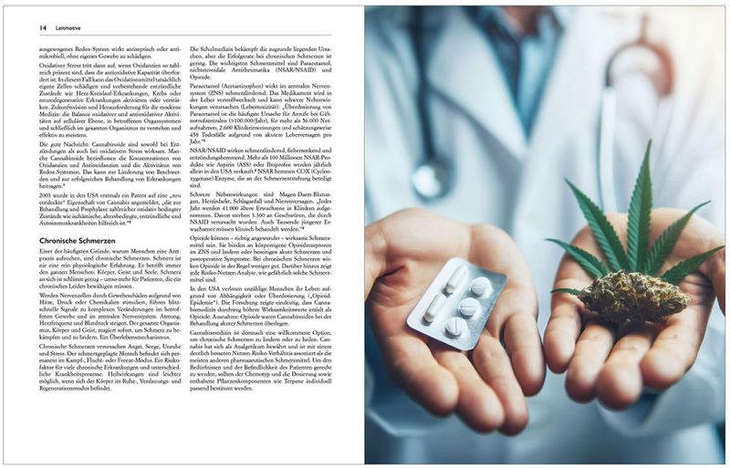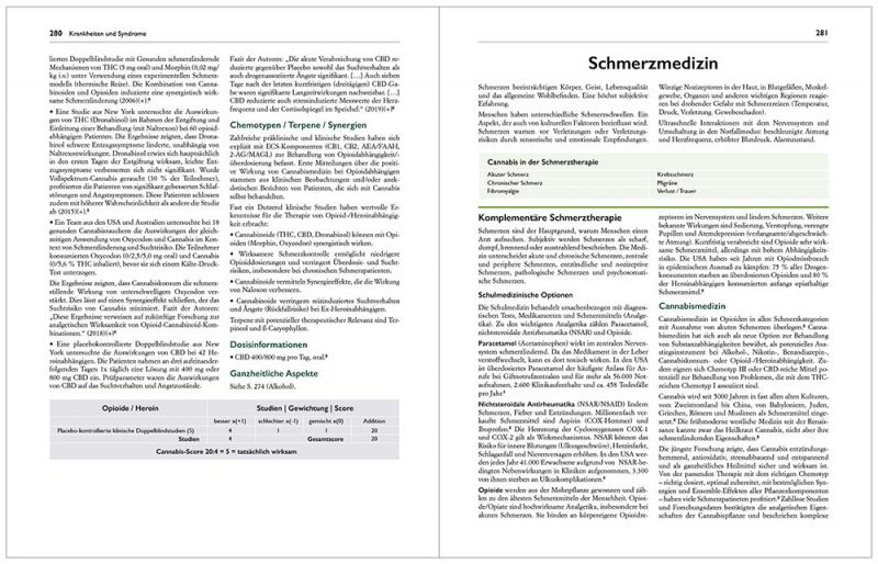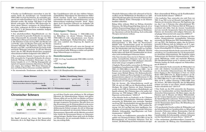 Zahlreiche Studien zeigen, dass Patienten, die Cannabis oder cannabinoidbasierte Medizin einsetzen, deutlich weniger Medikamente benötigen, um gleichwertige oder sogar bessere Ergebnisse zu erzielen. Dies bedeutet nicht nur reduzierte Behandlungskosten, sondern auch weniger Nebenwirkungen – insbesondere im Vergleich zu stark wirksamen Schmerzmitteln wie Opioiden. Für dieses Buch wurden mehr als 3.000 wissenschaftliche Studien ausgewertet, die sich mit Cannabis bei über 200 verschiedenen Erkrankungen befassen. Eine Wissensbasis, die gut begründete Entscheidungen für Cannabis als Behandlungs- option zulässt.