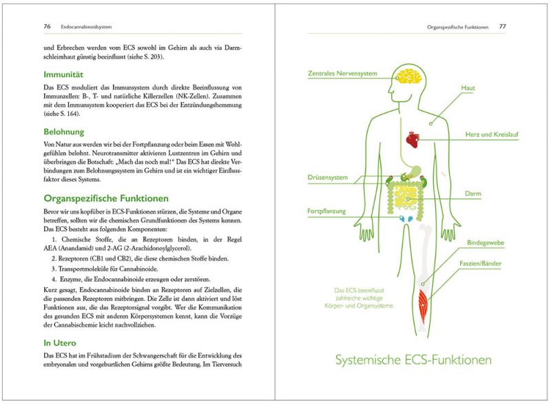 Der erstaunlichste Aspekt der Cannabispflanze ist unsere besondere Beziehung zu ihr: Es gibt ein Cannabinoidsystem in der Pflanze und ein passendes Cannabinoidsystem im menschlichen Körper (genannt Endocannabinoidsystem = ECS). Je mehr wir über die Wirkungsweise beider Systeme lernen, umso mehr Optionen für natürliche Heilung offenbaren sich. Das ECS bestimmt die Grundschwingung, die Balance des menschlichen Wohlbefindens. Funktionell ähnelt es dem Immunsystem.